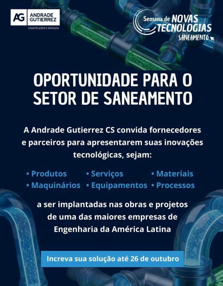 Andrade Gutierrez abre chamada para soluções tecnológicas no setor de saneamento