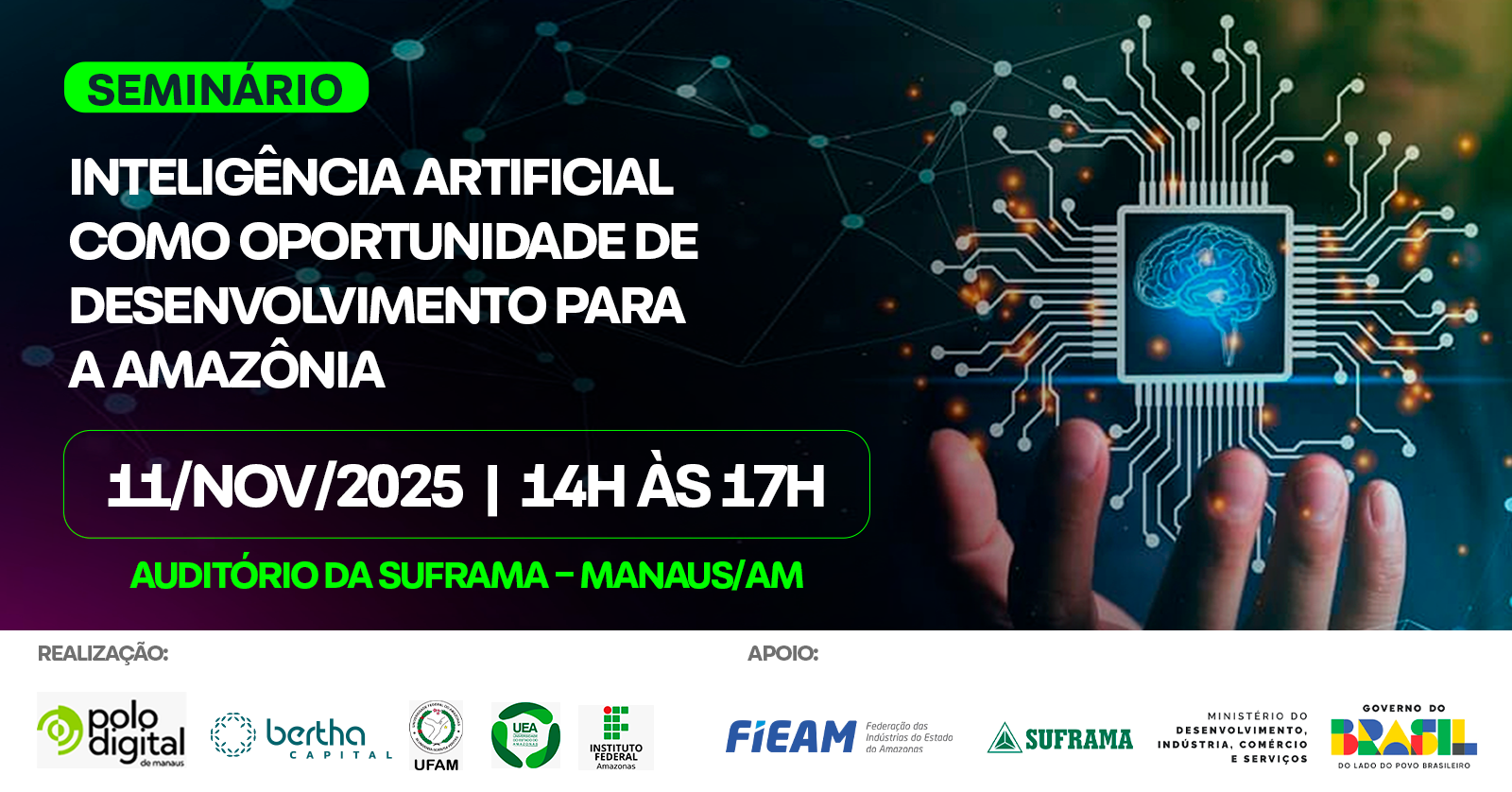 Realização: Polo Digital de Manaus, UFAM, UEA, IFAM, FIEAM, Bertha Capital e apoio da Suframa